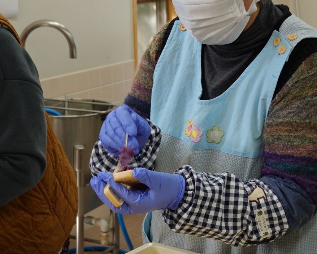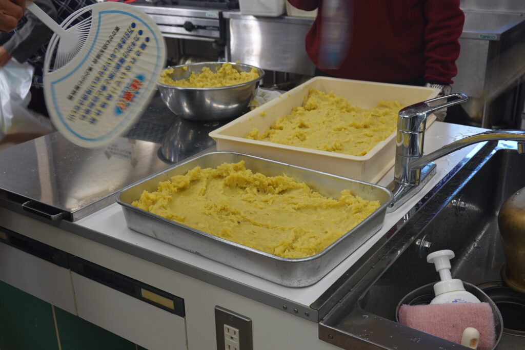 今回の活動のハイライトは、訪問時にお渡しした手作りの芋きんとんです。