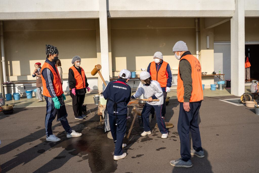 白鳥小学校の土曜学習で行った餅つき大会。